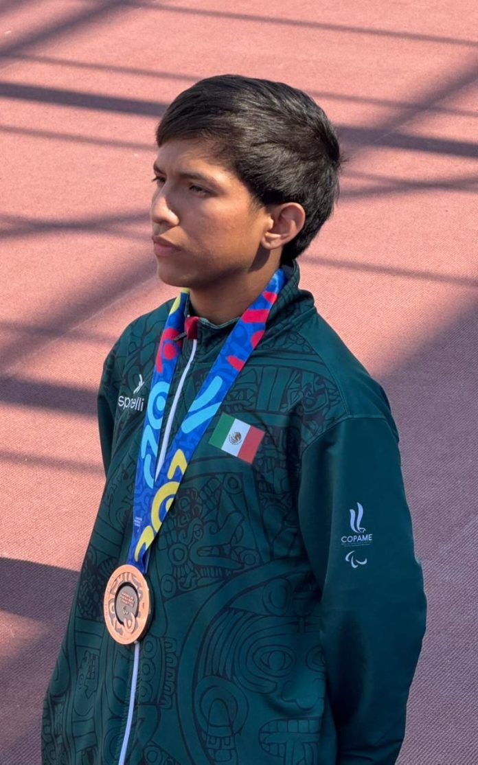Manuel Virués Lozano, director general del INDE Tamaulipas, informó que Emiliano Mejía Miguel obtuvo la medalla de plata en la prueba de 400 metros categoría T37, logrando subir al podio continental tras una gran competencia.