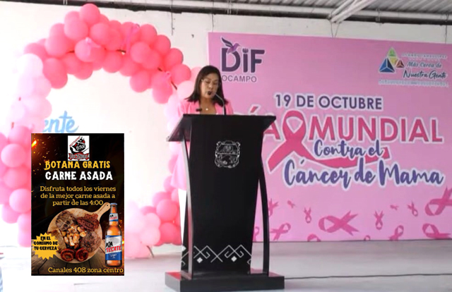 Ocampo, Tamaulipas. – En el marco del Día Mundial contra el Cáncer de Mama, conmemorado el 19 de octubre, el Sistema DIF Ocampo, presidido por la C.P. Martha Uresti Montelongo, llevó a cabo un evento de concientización y apoyo para destacar la importancia de la prevención y el acompañamiento a quienes enfrentan esta enfermedad.