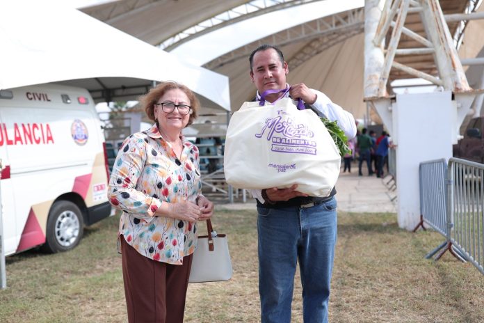 Un gesto que dio calidez a la jornada fue la entrega de bolsas elaboradas por personas que participan en la Casa Club del Adulto Mayor y en los Centros para el Desarrollo Integral de la Familia (CEDIF). Cada pieza fue confeccionada a mano, con materiales duraderos que las familias podrán reutilizar, reflejando el esfuerzo y dedicación de quienes integran estos espacios comunitarios.