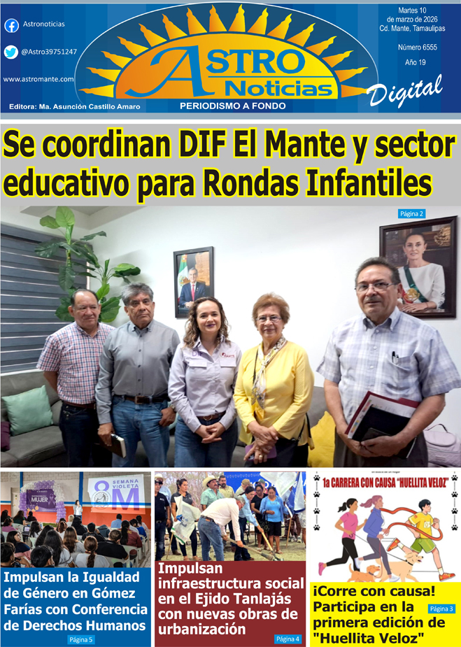 Estimable lector le presentamos la versión digital de su periódico #Astronoticias edición 10 marzo de 2026 #Tamaulipas #ElMante #Tampico #CdVictoria #Altamira #CiudadMadero #Reynosa #Matamoros #Xicotencatl #RioBravo #ValleHermoso #NuevoLaredo #Dallas #SanAntonio #NuevoLeon |