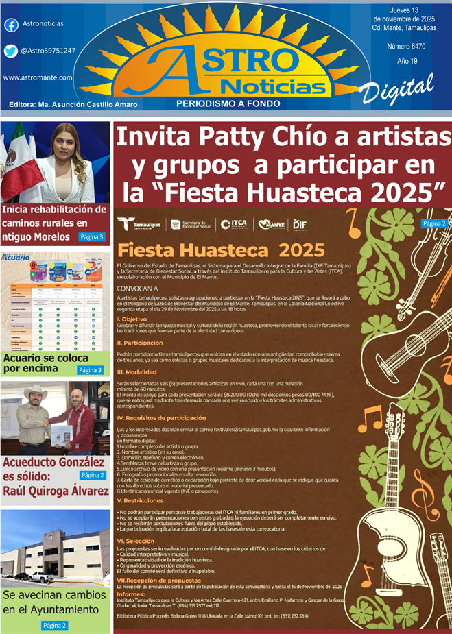Estimable lector le presentamos la versión digital de su periódico #Astronoticias edición 13 noviembre de 2025