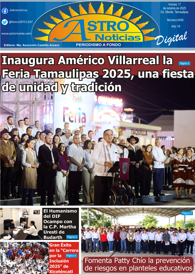 Estimable lector le presentamos la versión digital de su periódico #Astronoticias edición 17 octubre de 2025 #Tamaulipas #ElMante #Tampico #CdVictoria #Altamira #CiudadMadero #Reynosa #Matamoros #Xicotencatl #RioBravo #ValleHermoso #NuevoLaredo #Dallas #SanAntonio #NuevoLeon |