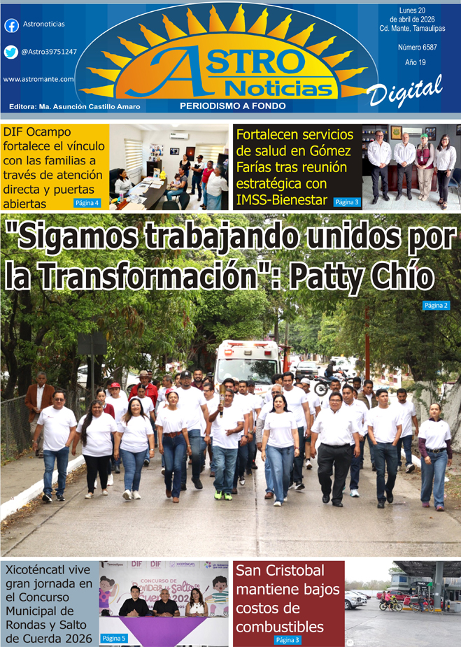 Estimable lector le presentamos la versión digital de su periódico #Astronoticias edición 20 abril de 2026 #Tamaulipas #ElMante #Tampico #CdVictoria #Altamira #CiudadMadero #Reynosa #Matamoros #Xicotencatl #RioBravo #ValleHermoso #NuevoLaredo #Dallas #SanAntonio #NuevoLeon |