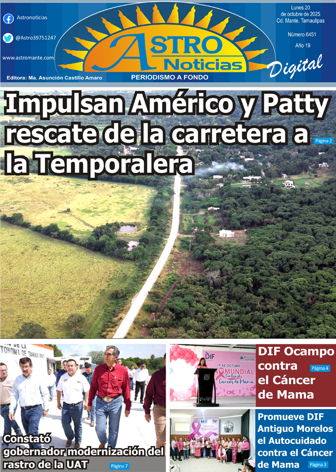 Estimable lector le presentamos la versión digital de su periódico #Astronoticias edición 20 octubre de 2025 #Tamaulipas #ElMante #Tampico #CdVictoria #Altamira #CiudadMadero #Reynosa #Matamoros #Xicotencatl #RioBravo #ValleHermoso #NuevoLaredo #Dallas #SanAntonio #NuevoLeon |