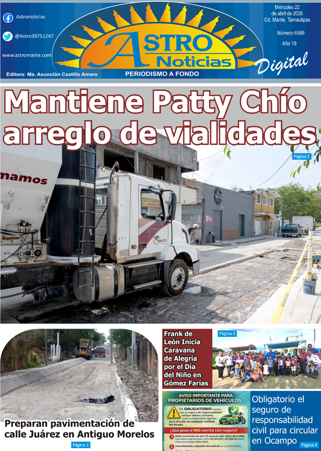 Estimable lector le presentamos la versión digital de su periódico #Astronoticias edición 22 abril de 2026 #Tamaulipas #ElMante #Tampico #CdVictoria #Altamira #CiudadMadero #Reynosa #Matamoros #Xicotencatl #RioBravo #ValleHermoso #NuevoLaredo #Dallas #SanAntonio #NuevoLeon |