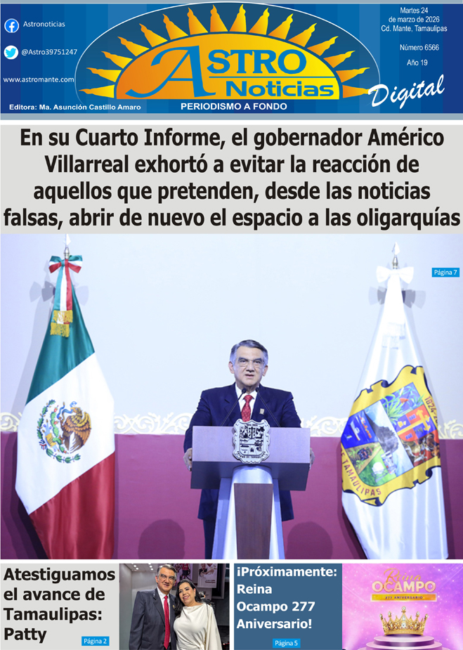 Estimable lector le presentamos la versión digital de su periódico #Astronoticias edición 24 marzo de 2026 #Tamaulipas #ElMante #Tampico #CdVictoria #Altamira #CiudadMadero #Reynosa #Matamoros #Xicotencatl #RioBravo #ValleHermoso #NuevoLaredo #Dallas #SanAntonio #NuevoLeon |