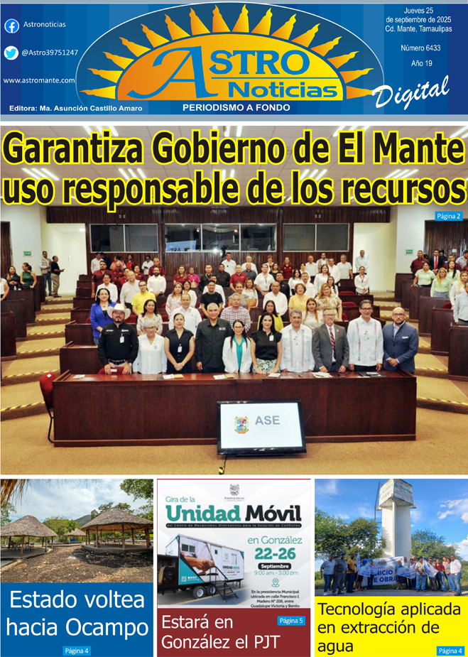 Estimable lector le presentamos la versión digital de su periódico #Astronoticias edición 25 septiembre de 2025 #Tamaulipas #ElMante #Tampico #CdVictoria #Altamira #CiudadMadero #Reynosa #Matamoros #Xicotencatl #RioBravo #ValleHermoso #NuevoLaredo #Dallas #SanAntonio #NuevoLeon |