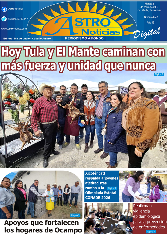 Estimable lector le presentamos la versión digital de su periódico #Astronoticias edición 3 febrero de 2026 #Tamaulipas #ElMante #Tampico #CdVictoria #Altamira #CiudadMadero #Reynosa #Matamoros #Xicotencatl #RioBravo #ValleHermoso #NuevoLaredo #Dallas #SanAntonio #NuevoLeon |