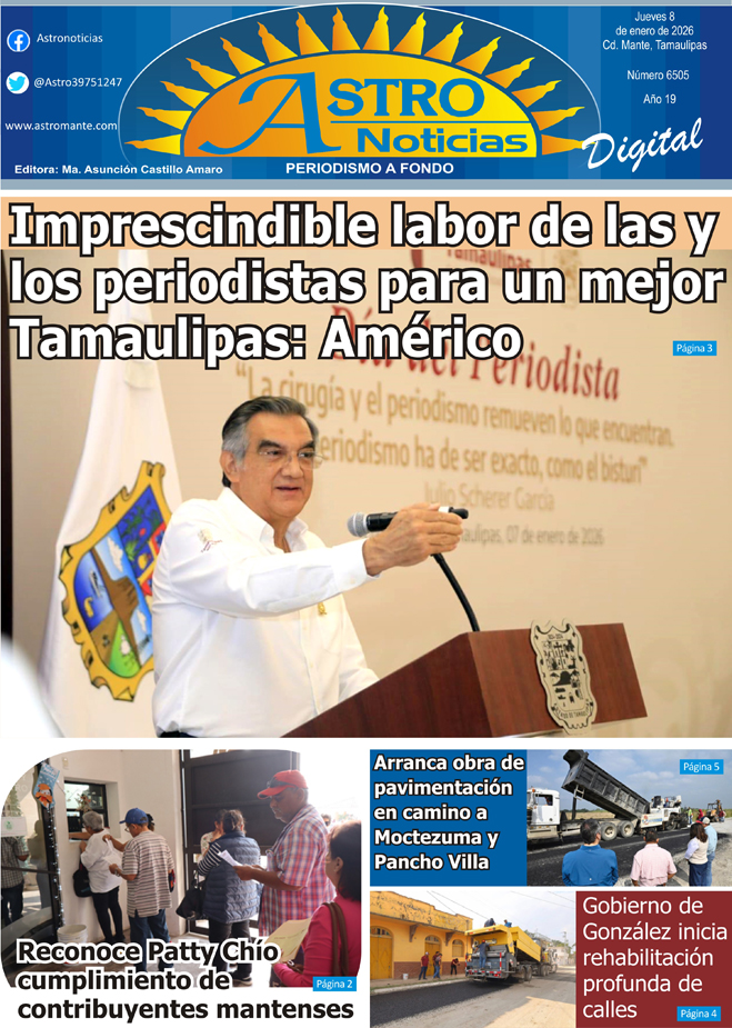Estimable lector le presentamos la versión digital de su periódico #Astronoticias edición 8 enero de 2026