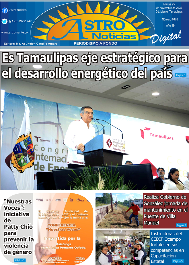 Estimable lector le presentamos la versión digital de su periódico #Astronoticias edición 25 noviembre de 2025 #Tamaulipas #ElMante #Tampico #CdVictoria #Altamira #CiudadMadero #Reynosa #Matamoros #Xicotencatl #RioBravo #ValleHermoso #NuevoLaredo #Dallas #SanAntonio #NuevoLeon |