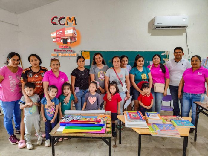Gómez Farías, Tamaulipas. El alcalde Lic. Frank de León Ávila encabezó la entrega de material educativo destinado al Centro de Asistencia Infantil Comunitario (CAIC) del ejido El Azteca.