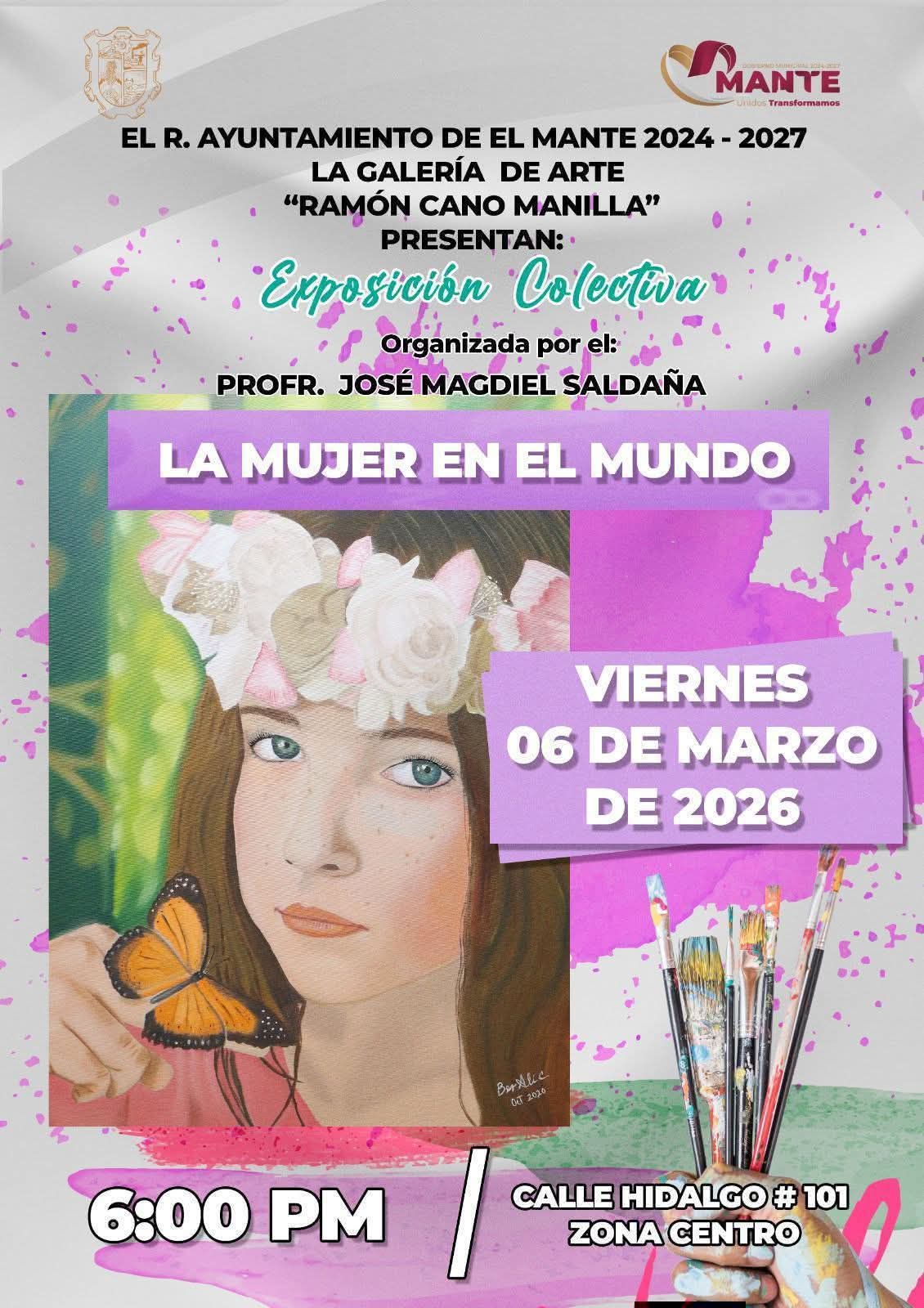 El R. Ayuntamiento de El Mante 2024–2027 y la Galería de Arte “Ramón Cano Manilla” tienen el honor de invitar a los representantes de los diferentes medios de comunicación a la inauguración de la Exposición Colectiva “La Mujer en el Mundo”, organizada por el Prof. José Magdiel Saldaña.