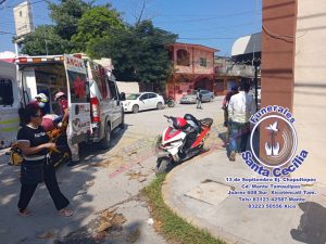 En El Mante Tamaulipas… Una joven mujer y su hija terminaron lesionadas al estrellarse en la motocicleta en la que se desplazan contra una patrulla de la Guardia Nacional que se voló una señal de alto.