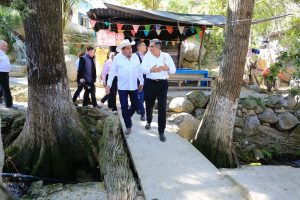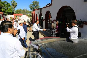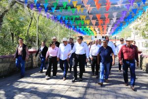Como parte de su visita al poblado El Chorrito, Villarreal Anaya caminó hasta el santuario donde se encuentra el nicho de la virgen y saludó a los vecinos del lugar, quienes lo recibieron entusiastamente y le agradecieron las obras que realiza.
