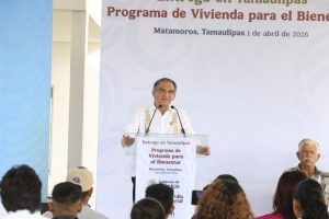 Matamoros, Tamaulipas.- Tamaulipas refrendó su liderazgo nacional en el programa de Vivienda para el Bienestar, al entregar en el desarrollo habitacional El Mezquital, 19 casas nuevas construidas por la Comisión Nacional de Vivienda para familias de pescadores, en un evento encabezado por la presidenta Claudia Sheinbaum, en enlace virtual con el gobernador Américo Villarreal Anaya.