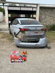 Tras el impacto, el automóvil presentó daños en la fascia trasera, la cual quedó desprendida, además de algunas abolladuras ocasionadas por el golpe de la motocicleta.
