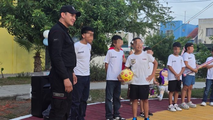 Matamoros, Tamaulipas.– Como parte de las acciones de proximidad social y fortalecimiento de la cultura cívica, personal de la Guardia Estatal participó en una celebración con motivo del Día de la Niña y el Niño, realizada en el sector Estancias Residenciales del municipio de Matamoros.