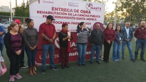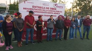 La Presidenta Municipal de El Mante, Patty Chío de la Garza, encabezó la entrega oficial de la cancha rehabilitada en el fraccionamiento Santa Mónica, un espacio público destinado a fomentar la convivencia, la práctica deportiva y el desarrollo integral de niñas, niños, jóvenes y familias del sector.