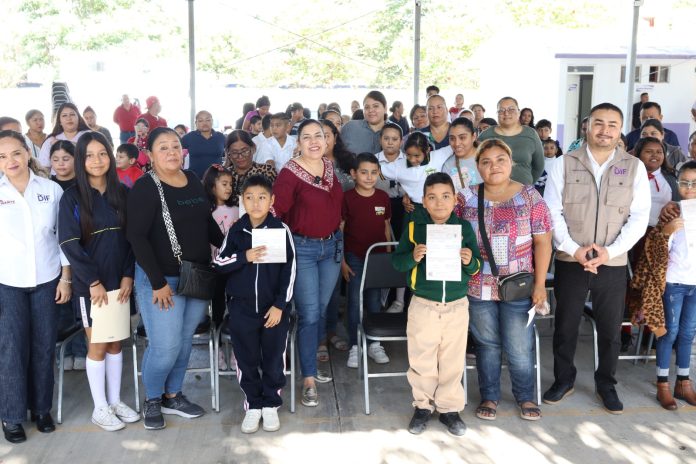 De la mano del Gobernador Américo Villarreal Anaya y la Dra. María de Villarreal Presidenta del Sistema DIF Tamaulipas, la Presidenta Municipal Patty Chío entregó becas del programa “Esperanza de Tamaulipas” para 36 niños y niñas que se mantienen en las aulas educativas y se benefician con los programas PANNARTI y Nuestros niños, a través de los cuales el Sistema DIF Tamaulipas apapacha a quienes se encuentran en situación de vulnerabilidad.