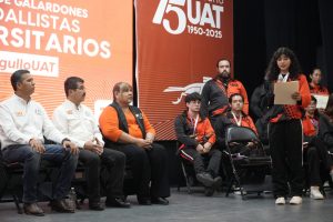 Señaló que las 24 medallas representan tanto un logro histórico como un nuevo desafío para seguir creciendo, y reafirmó que portar los colores de la UAT es un honor, concluyendo con el mensaje que distinguió a esta ceremonia: “Todos somos Correcaminos”.