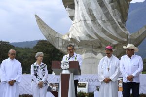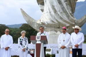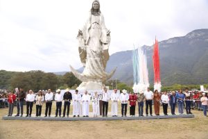 En un día histórico, acompañado por la doctora María de Villarreal, presidenta del Sistema DIF Estatal, y del obispo de la Diócesis de Victoria, monseñor Óscar Efraín Tamez Villarreal, y ante miles de asistentes que llegaron para admirar la imagen que se erige imponente en el corazón de la Sierra Madre, el gobernador hizo un llamado para demostrar que Tamaulipas es un pueblo que camina en unidad.