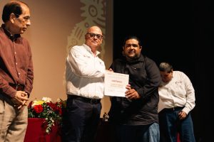 Para la ceremonia de entrega estuvieron también presentes Víctor Manuel Martínez Torres, subdirector de Formación y Capacitación de la Secretaría de Bienestar Social Tamaulipas en representación de Silvia Casas González; Carla Saucedo Huidobro, jefa del Departamento de Culturas Populares del ITCA y Jesús Adrián Sánchez Ramírez, enlace de Contraloría del PACMyC.