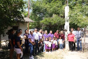En el ejido Conrado Castillo y Bellavista ubicados en la zona cañera del municipio, la Presidenta Municipal entregó la construcción e instalación de mufa y conexión eléctrica, además de certificados de fumigación, zapatos y útiles escolares, que fortalecen la educación de los niños y niñas que cursan su preescolar en los CAIC.