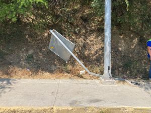 Maneja un Nissan Sentra de norte, sur y por la velocidad y en la curva que hay frente al planetario pisan unas boyas y pierde el control. Se va de lado de piloto y va esa estrella o se abraza prácticamente de un arbotante del municipio