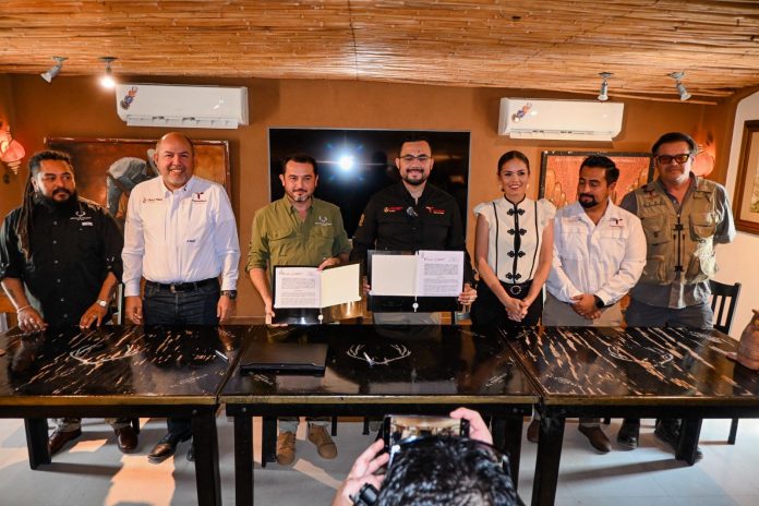 Jiménez, Tamaulipas.– Con el objetivo de fortalecer la protección del patrimonio natural y promover el desarrollo sustentable, la Comisión de Parques y Biodiversidad de Tamaulipas firmó un Convenio Marco de Colaboración con Mezcales de Tamaulipas – Rancho El Tinieblo, alianza que permitirá impulsar proyectos de conservación de flora y fauna, restauración ecológica y educación ambiental.