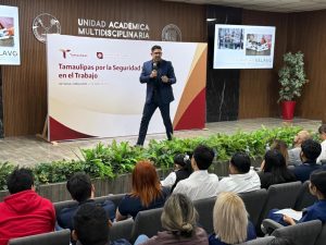Durante la jornada, realizada en la Unidad Académica Multidisciplinaria Reynosa Aztlán de la Universidad Autónoma de Tamaulipas, se impartieron conferencias magistrales orientadas a fortalecer la cultura preventiva, abordando temas como la integración de comisiones de seguridad e higiene, el uso adecuado del equipo de protección personal y la implementación de programas voluntarios para el cumplimiento de la normativa laboral.