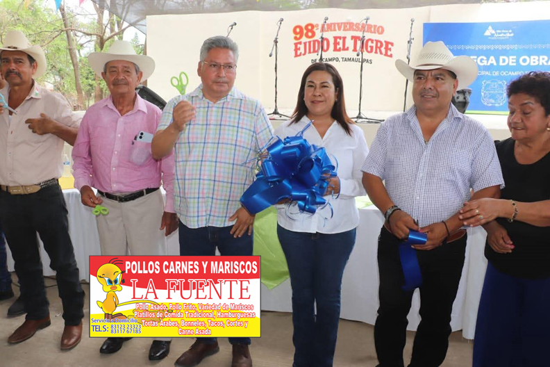 OCAMPO, TAM. – Con el firme compromiso de dignificar los espacios públicos y fomentar la convivencia comunitaria, el Gobierno de Ocampo bajo la guia de su alcalde Melchor Budarth Báez, llevó a cabo la entrega oficial de las obras de construcción de un foro y módulos de baños en la techumbre del Ejido El Tigre, evento donde estuvo acompañado de la C.P Martha Uresti de Budarth.