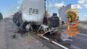 Estuvieron involucrados dos tractocamiones marca Kenworth, así como un tractocamión Freightliner.