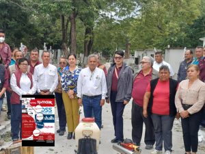 Autoridades municipales encabezadas por la presidenta municipal Licenciada Martha Patricia Chío de la Garza y de salud con el doctor Juan Genaro Rodríguez al frente dieron el banderazo de los trabajos de fumigación en los panteones locales.
