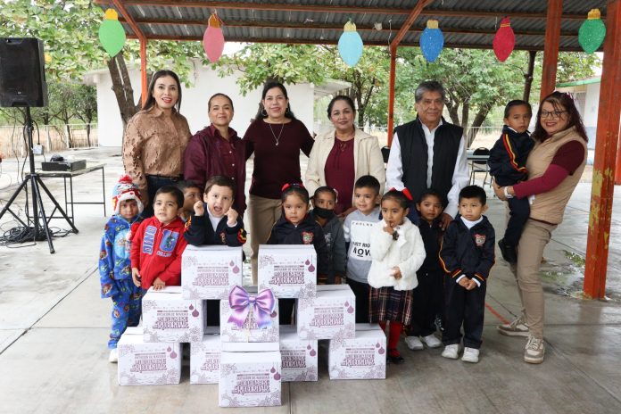 * Con la dotación navideña “Un DIFciembre para recordar” que envió la Dra. María de Villarreal a escuelas que están en el padron estatal de desayunos escolares.