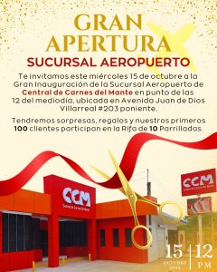 Gran Apertura de la Sucursal Aeropuerto de Central de Carnes del Mante, este Miércoles 15 de octubre a las 12 del mediodía en Avenida Juan de Dios Villarreal #203 poniente.