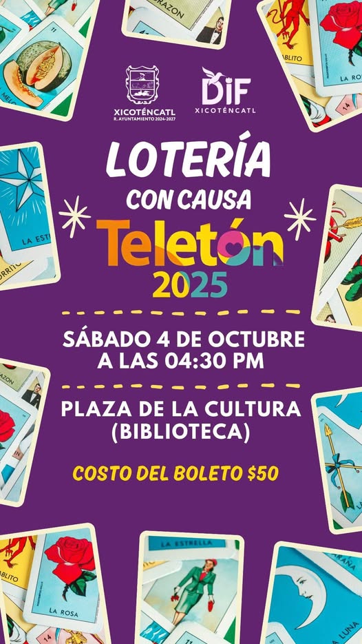 El Ayuntamiento de Xicoténcatl, bajo la presidencia de Mariela López Sosa, en coordinación con el Sistema DIF municipal que dirige Marla García López, extienden una cordial invitación a la ciudadanía para participar en una Gran Lotería con Causa a beneficio del Teletón.