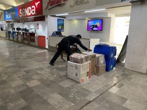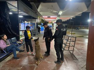 Durante la intervención, el canino “Looky” realiza barridos preventivos en pasillos, sala de espera, andenes, áreas comunes y la zona de paquetería, además de la inspección de maletas y autobuses de distintas líneas de transporte foráneo.