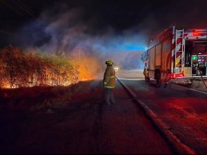 Padilla, Tamaulipas.- Personal de la Guardia Estatal, Apoyo Carretero y Fuerzas Especiales de la Guardia Estatal (FEGE) acudieron al kilómetro 64 de la Carretera Federal 101 Victoria-Matamoros en atención a un reporte por incendio de tractocamión.