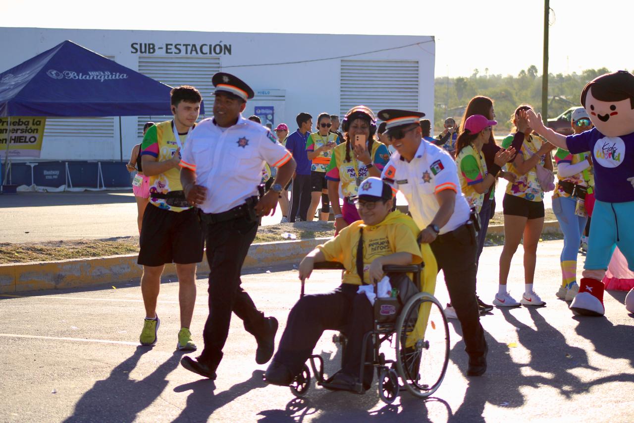 Reynosa, Tamaulipas.- En el marco del Día Internacional contra el Cáncer Infantil, personal de la Guardia Estatal y Dirección de Tránsito Estatal de la Secretaría de Seguridad Pública de Tamaulipas (SSPT) convivieron con familias reynosenses en la carrera “Pequeños Héroes” 2026.
