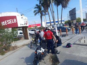 La imprudencia al volante volvió a cobrar factura la tarde de este día sobre la avenida Rotaria, a la altura de la esquina con Benito Juárez, justo frente al Centro de Atención a Clientes Telcel, donde una joven motociclista terminó brutalmente tendida en el suelo tras perder el control de su unidad.