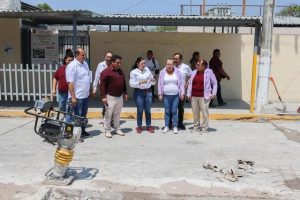 * Visita la Escuela Primaria “Adolfo López Mateos” para hacer entrega de pintura, además de poner en marcha la rehabilitación de la calle Antonio Caso con el programa de bacheo de concreto hidráulico.