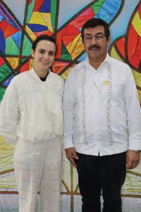 Acompañado por la directora de la FMA, Norma Laura Barrientos Villanueva, el rector dialogó con la intérprete sobre la importancia de la colaboración artística como herramienta de formación, internacionalización y fortalecimiento cultural de la comunidad universitaria.