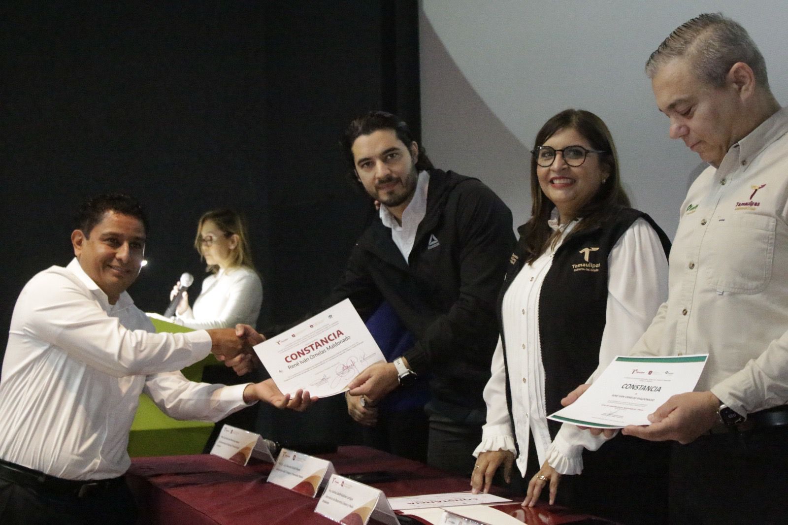 Ciudad Victoria, Tamaulipas.- La Secretaría del Trabajo y Previsión Social del Gobierno de Tamaulipas participó en el cierre del curso “Proyecto de Certificación de Operador de Transporte Híbrido”, realizado en el Auditorio Tamux de Ciudad Victoria, donde se llevó a cabo la entrega de constancias a conductores de transporte público que concluyeron satisfactoriamente su proceso de formación.