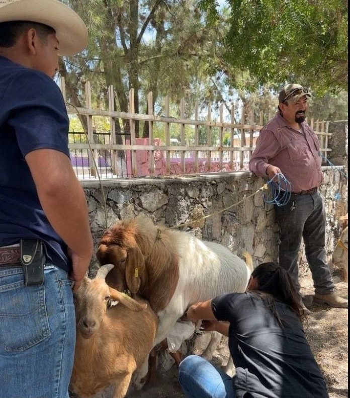 Miquihuana, Tamaulipas. – Como parte de las estrategias orientadas a fortalecer la productividad del sector caprino en el altiplano tamaulipeco, la Dirección de Extensionismo Pecuario y Forestal continúa con la implementación del programa de evaluación de sementales caprinos, enfocado en mejorar la eficiencia reproductiva de los hatos en la región.