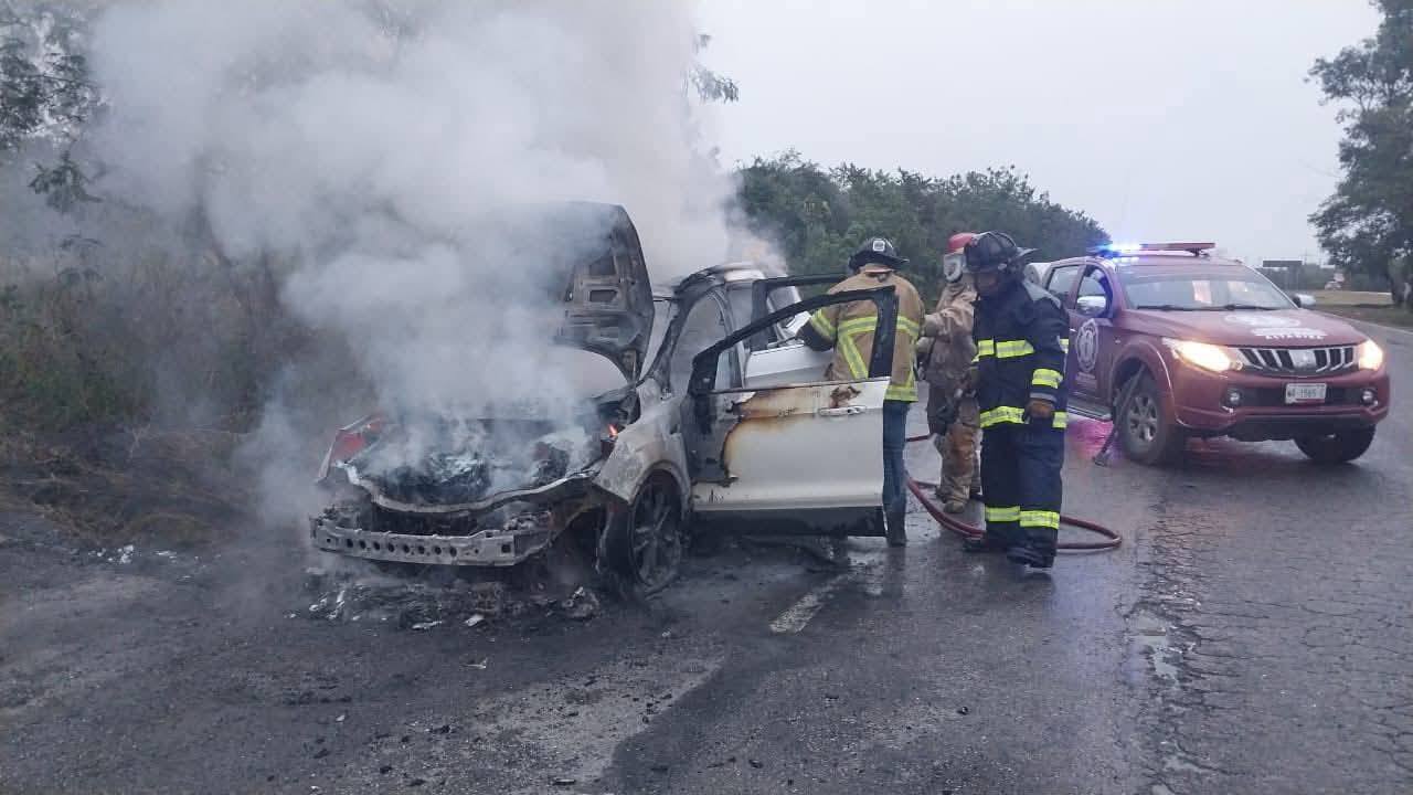 Según las autoridades, la camioneta Chevrolet Equinox color blanco circulaba de manera normal, cuando comenzó a salir humo debajo del cofre, logrando ponerse a salvo los ocupantes mientras que el fuego comenzó a cubrir al vehículo.
