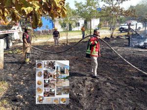 En El Mante, Tamaulipas.. Una casa construida de madera y lámina quedó reducida a cenizas tras un incendio de pastizal registrado la tarde de este jueves en la Colonia Campesina.