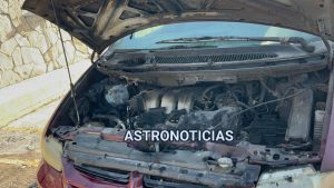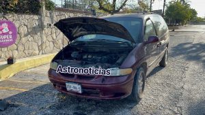 De inmediato, los tragahumo se trasladaron al lugar a bordo del camión cisterna y una unidad de ataque rápido, encontrando una camioneta Caravan color guinda, con placas de circulación XSP-486-B del estado de Tamaulipas, envuelta en humo proveniente del área del motor.
