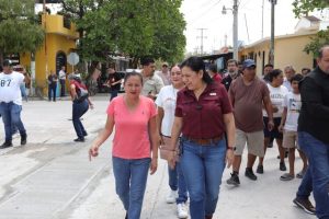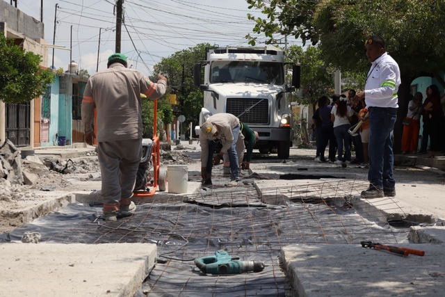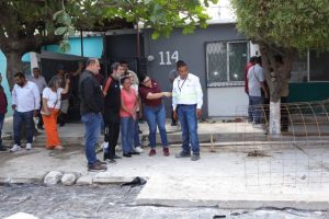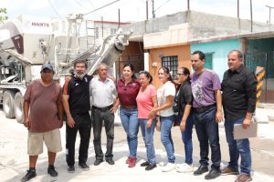 Durante el inicio de la obra, la alcaldesa estuvo acompañada por vecinas y vecinos, así como personal de Servicios Públicos, quienes, con el apoyo de la concretera móvil, realizan una intensa jornada que inició en las calles Ciprés y Justo Sierra.
