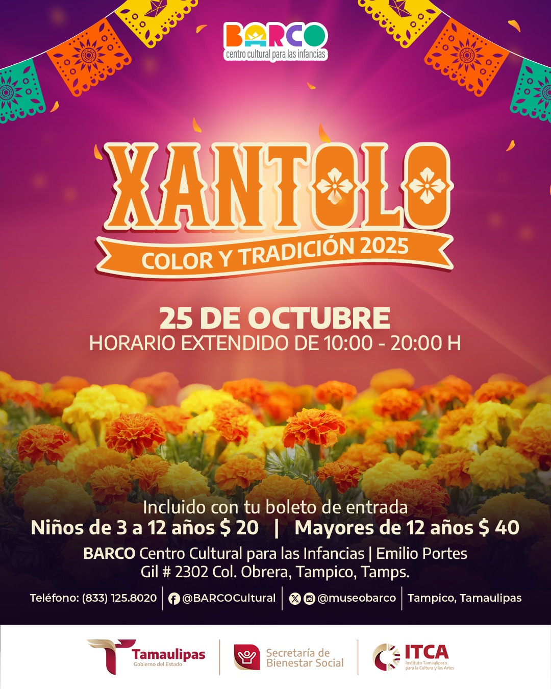 Entre las actividades más esperadas de la época y que se realizarán en BARCO, destaca el Xantolo 2025, en donde habrá presentación de las comparsas Tempoal Mainero y Los Huastecos de Altamira, el Ballet Folclórico Yacatecutli de la UAT, talleres de arte, cuentos y leyendas de la huasteca, así como un mercado de emprendedores locales que llenará de vida el recinto.