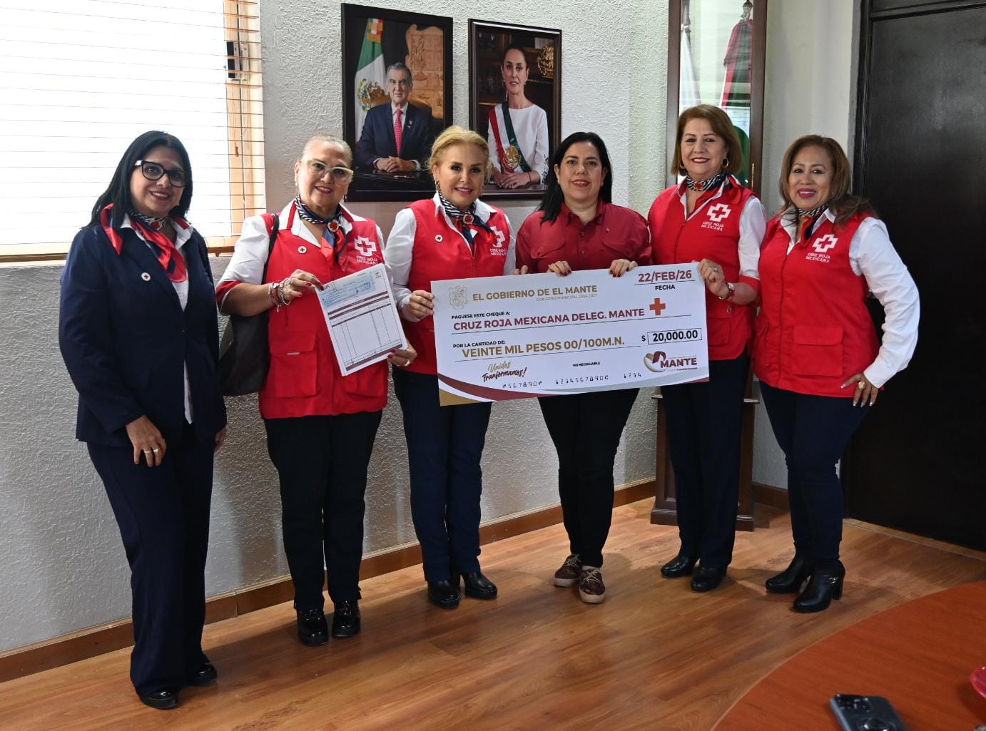 La Presidenta Municipal Patty Chio a nombre del Gobierno Municipal El Mante 2024-2027 realizó la entrega del donativo destinado para la Cruz Roja Mexicana Mante , en el marco de la colecta anual 2026. Junto a la Presidenta del Patronato de la benemerita institución Ruth Gamez Verástegui e integrantes del mismo, la Alcaldesa afirmó el compromiso de trabajar en equipo con sentido humanista y brindar apoyo y asistencia a la sociedad mantense .